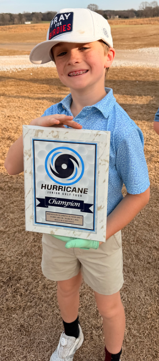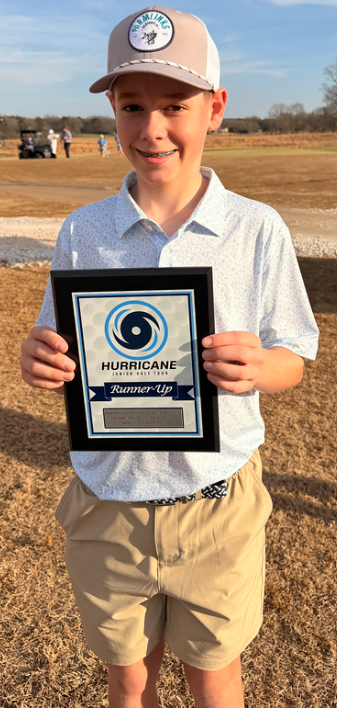 The Auburn, Alabama native opened with an 83 before responding with a closing 77 to finish at +16 (160), capturing the Boys 12–13 division at the Birmingham Spring Junior Open.
