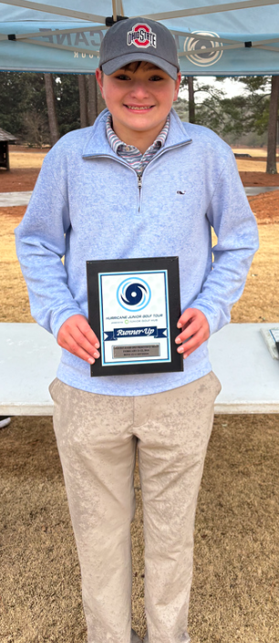 The Auburn, Alabama native opened with an 83 before responding with a closing 77 to finish at +16 (160), capturing the Boys 12–13 division at the Birmingham Spring Junior Open.
